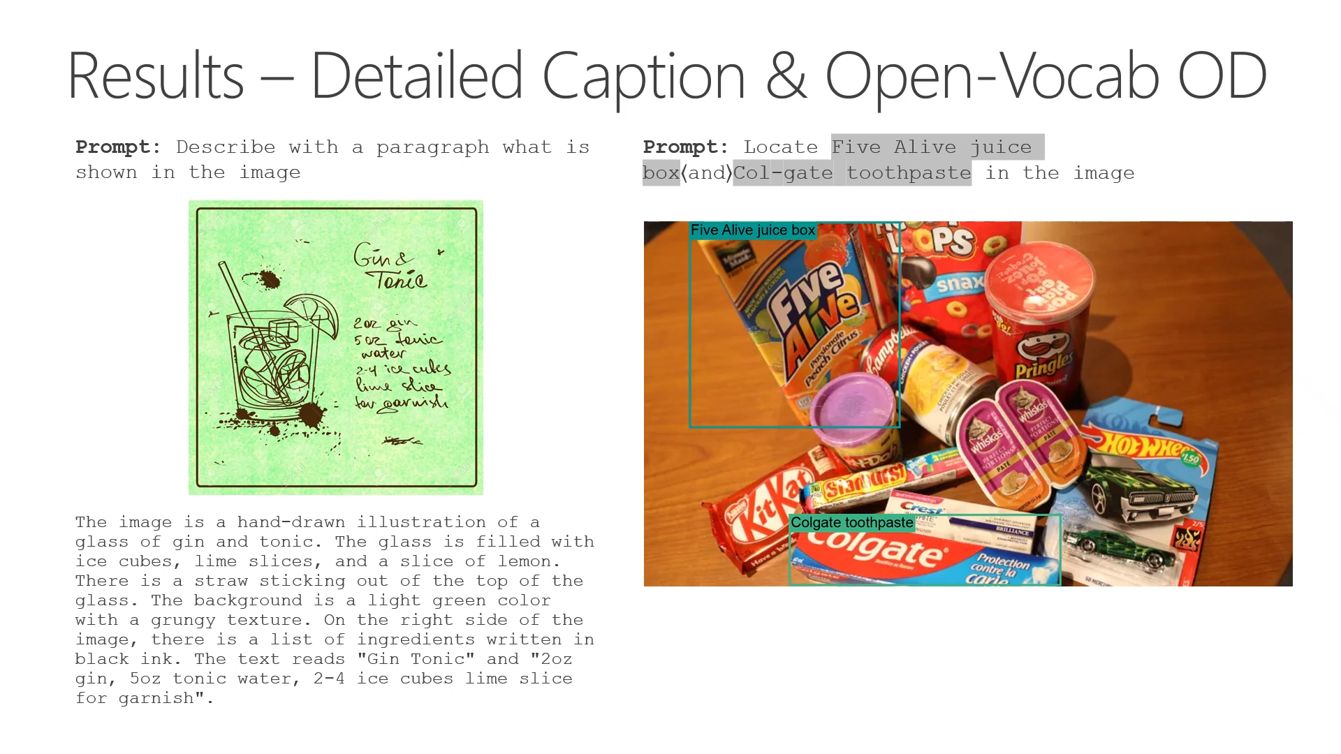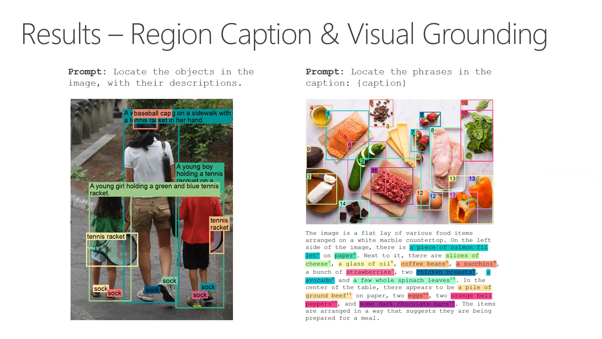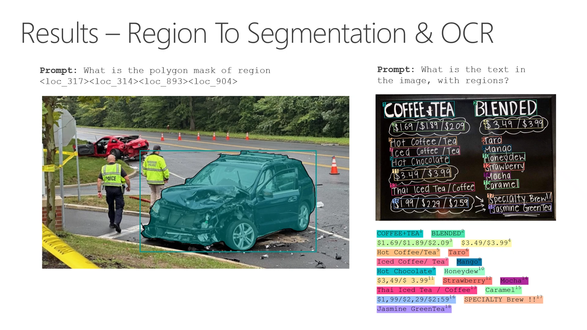 이 하나의 모델로 이미지 설명, 이미지에서 물체 찾기, 이미지에서 각 물체에 대한 박스 생성 및 설명, 글자 읽기, 정해준 영역에서 특정 사물 영역 분리 등의 온갖 작업(총 12가지)이 가능합니다.