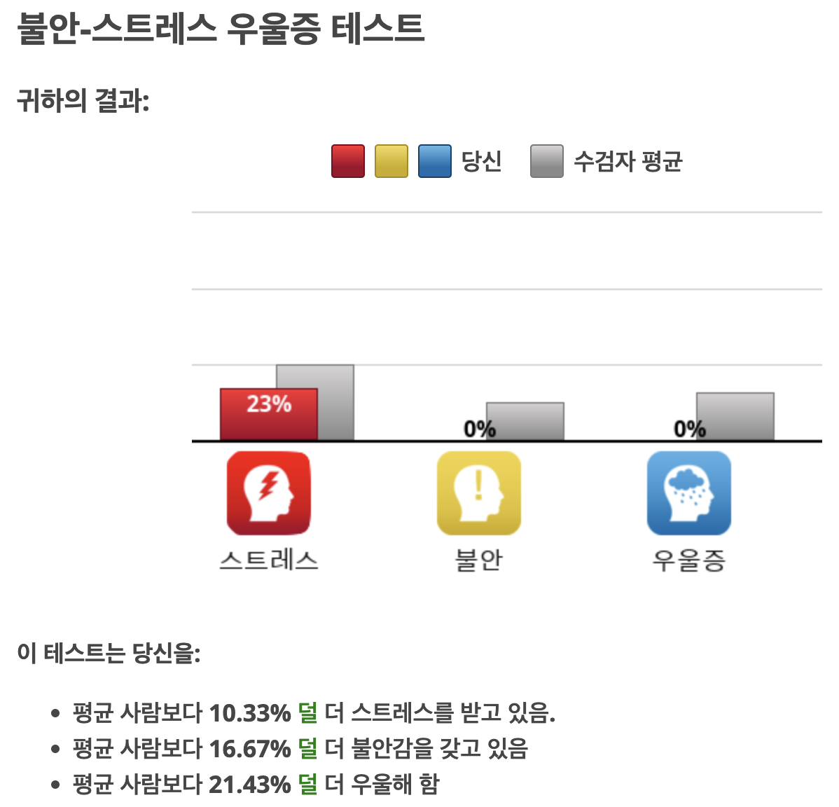 특히 이번주 정신과에서의 질문지에서는 제 자신도 점수가 많이 내려간 것을 느꼈습니다.