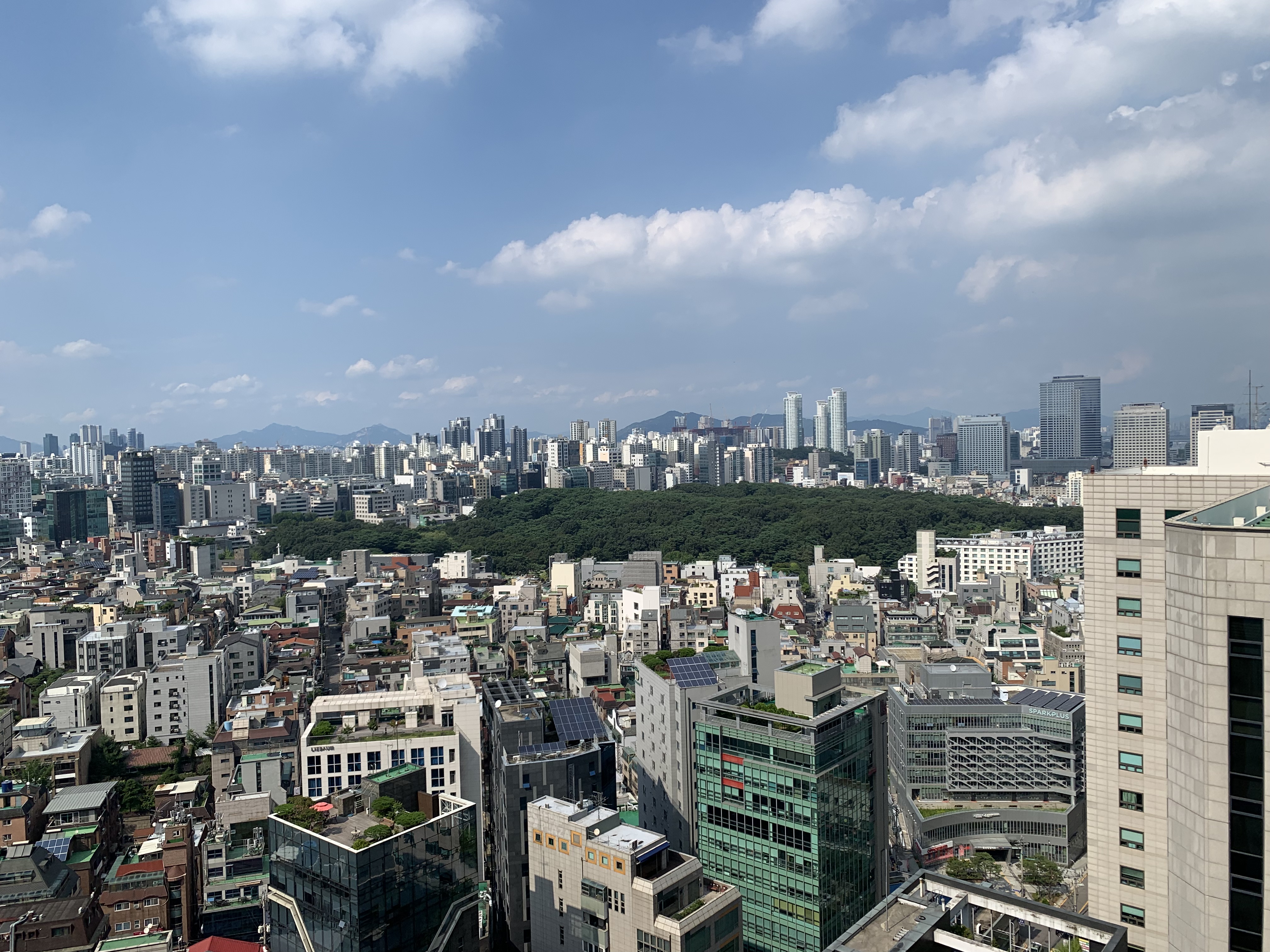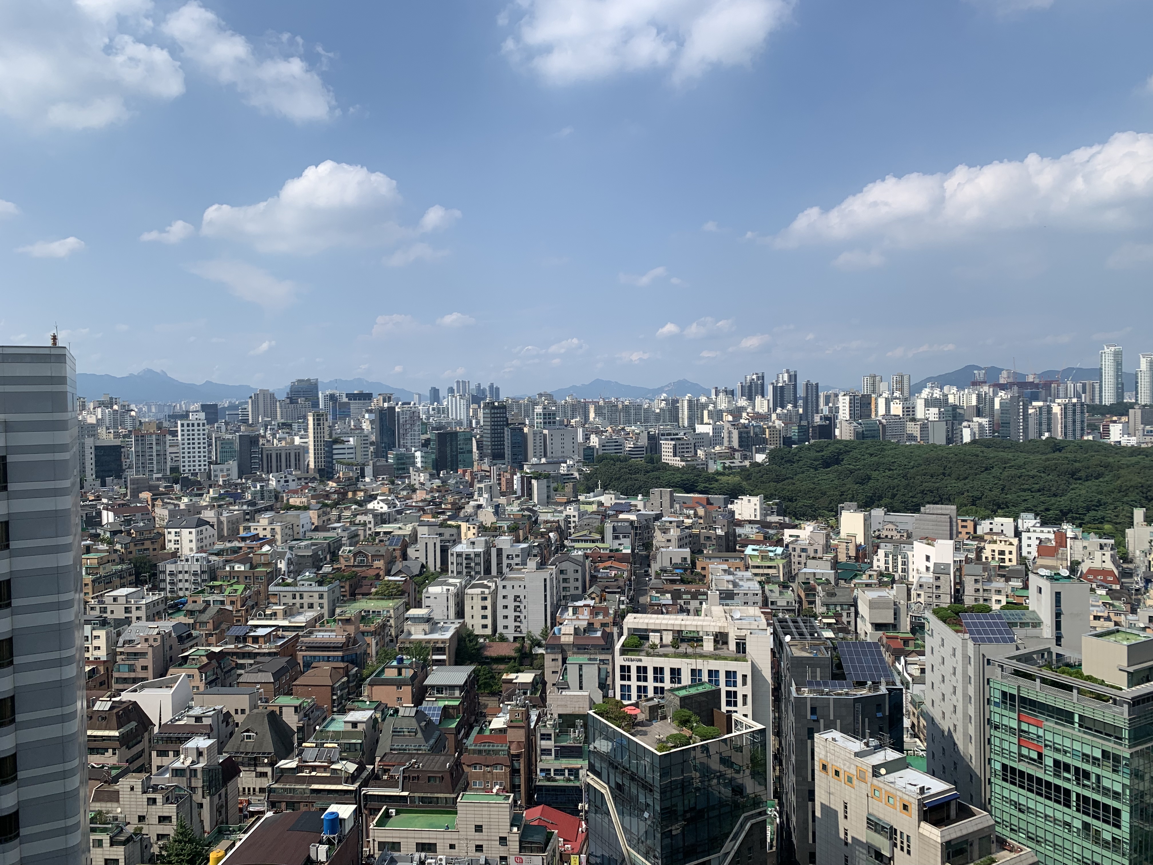저 멀리 보이는 산과, 맑은 하늘과, 도심의 오밀조밀한 모습이 감탄을 자아냈습니다.